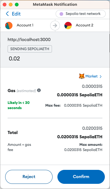 In the app, notice that when you try and send a transaction using Web3Provider, the app opens a MetaMask instance to transfer your funds.